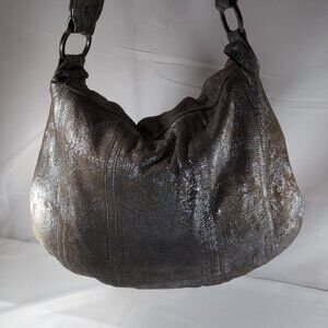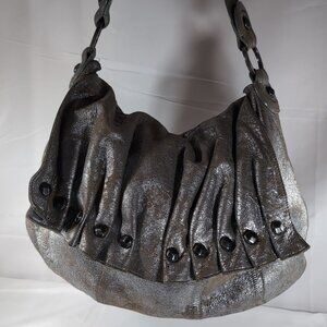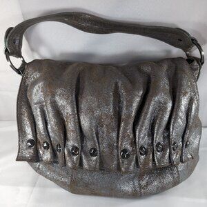 7 For All Mankind Leather Purse Shoulder Bag Silver Distressed Studded Hobo Flap