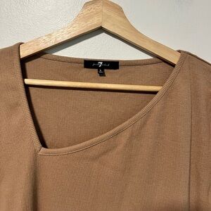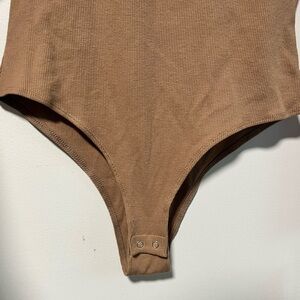 7 For All Mankind Long Sleeve Ribbed Bodysuit Tan Size L