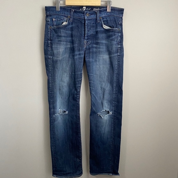 7 For All Mankind Men's Medium Wash Denim Distressed Knee Jeans Size 33