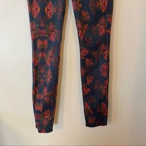 7 For All Mankind Rose Print Mid-Rise Skinny Jeans (Size:26)