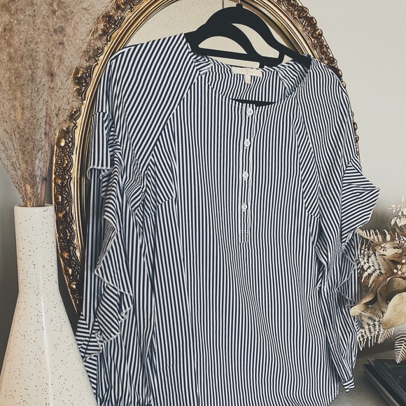 Excellent Condition: Adorable Ruffle-Sleeved pullover blouse with button details in the front; relaxed fit.
