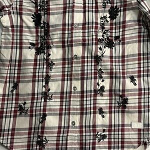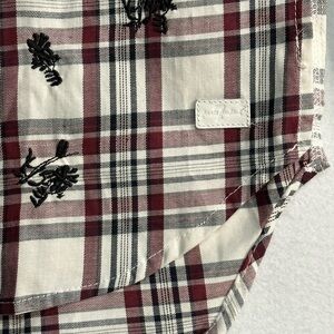 -7 For All Mankind, Western Plaid With Black Floral Embroidered Button Down Shirt