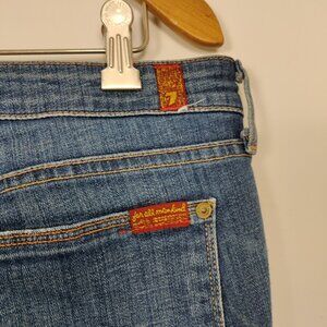 7 For All Mankind Women's Boot Cut Jeans Size 30 Blue Cotton Casual Distressed