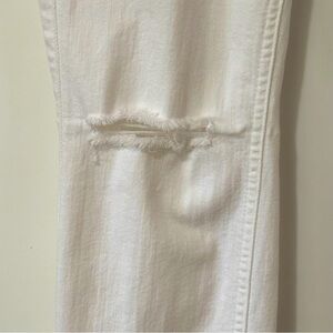 Elegant white skinny jeans with distressed knee slits and a stretch fit.. Perfect for a sleek look. Size 26. In good pre-owned condition, laundered and ready to wear.