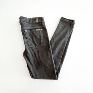 7 For All Mankind Womens Dark Wash Suede-look Stretchable Skinny Jeans Dark Olive Green Size 28