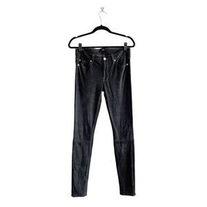 7 For All Mankind Womens Dark Wash Suede-look Stretchable Skinny Jeans Dark Olive Green Size 28