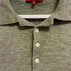 7 For all Mankind Wool Linen Blend Sweater Collared Button Polo in grey medium