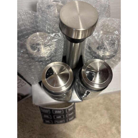 7 Piece Glass & Stainless Steel Spice Jar Set With Rotating Rack & Labels