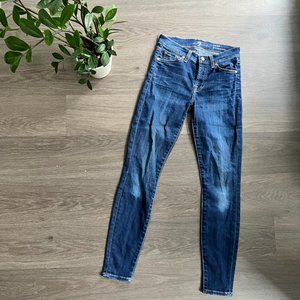 7 for All Mankind Dark Blue "Ankle Gwenevere" Mid-Rise Skinny Jeans. In excellent condition with no visible flaws or defects (tears, stains, damage, pilling). A classic pair of jeans in high quality denim & a perfect closet staple!