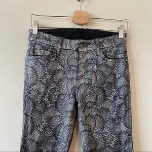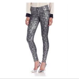 7 For All Mankind-Lace Metallic Sheen Mid Rise Skinny Jeans (Size:27)