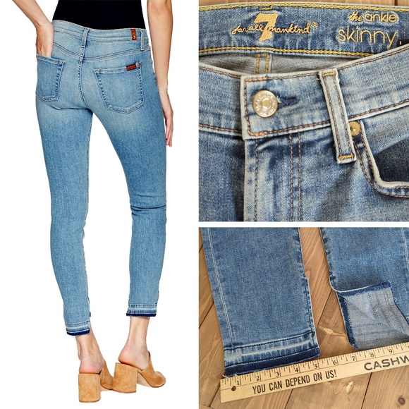 7 for all mankind The Ankle Skinny Split Raw Hem Jeans 25W