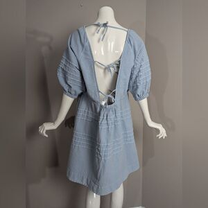 7 for all mankind blue balloon baby doll open back mini dress Large