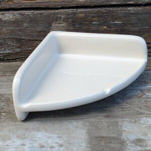 A ceramic corner shelf for bathroom fixes, updates, or simply to have it on your counter space. It stands well by itself, the simple groove on top.