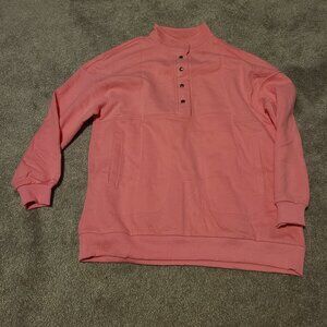 Fisoew Bright pink Women's Oversized Sweatshirt Fleece Long Sleeve Half Button Casual Pullover Tops With Pockets