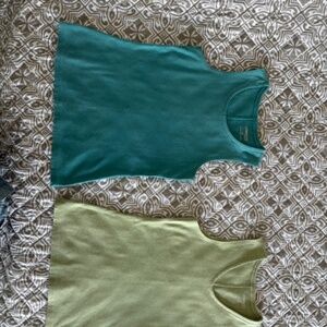 7 sleeveless t-shirts - 5 are adjustable spaghetti straps. Various brands and sizes but all fit small to medium.