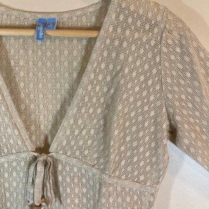 Elevate your beach look with this size Small St. John's Bay swim cover-up. Made in India and brand new without tags, it boasts a chic beige color with a stylish tie front. Transition effortlessly from the water to a leisurely lunch in this versatile cover-up. Measures 19 inches armpit to armpit and 29.5 inches shoulder to bottom hem.