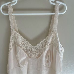 Maid. This cream slip has lace trimmed along the bust and hem lines.