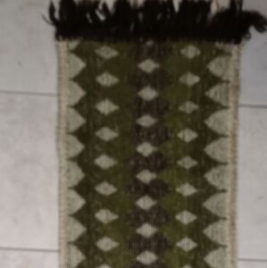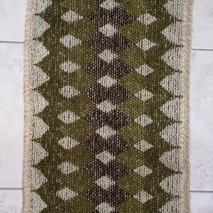 70s MCM reproduction GREEN/BROWN chenille geometric Argyll fringed table runner