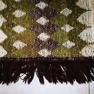 70s MCM reproduction GREEN/BROWN chenille geometric Argyll fringed table runner