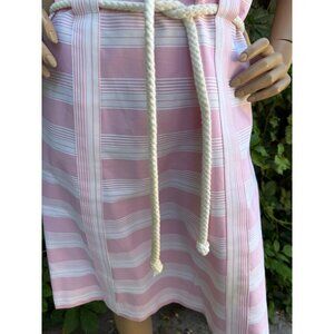 70s 80s Pink Stripe Cotton Sleeveless Shift Dress Rope Belt Scoop Neck Volup Nautical Travel Leisure Cruise resort