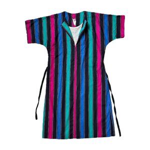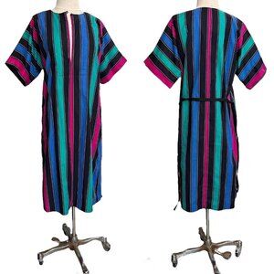70s 80s vintage striped hippy dress caftan coverup cotton relaxed loose belt.