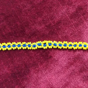 Plastic seed beads, 24 inches one side. Its very long. Hand crafted.