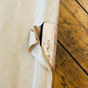 Frame: The backing has a rip on one edge. See picture. The 4 corners are MADE like this, with a little gap as a design.