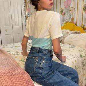 Tags: pale blue, baby blue, blue and white, knitted acrylic sweater shirt, v neck sweater shirt, white and blue shirt, vintage 1970s, 70s vintage acrylic shirt, vintage 70s shirt floral, cottagecore, downtowngirl, vintage, hyper feminine, angelcore brandy melville babydoll fairy coquette grunge chemise corset cover camisole princess pixie fairycore corset, milkmaid top, ribbon floral, cottagecore, downtowngirl, vintage, hyper feminine, angelcore brandy melville babydoll Boho bohemian cottage core flowers deadstock, Y2K, festival, boho, bohemian, billow, flare trousers, 2000s,Cosmic hippy goth festival Boho Bohemian Festival rave spiritual retro
