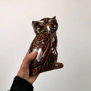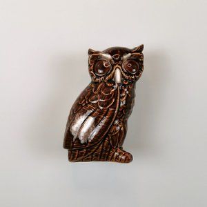 70s Brown Mirror Glaze Ceramic Owl Figurine