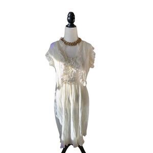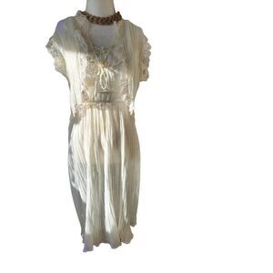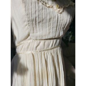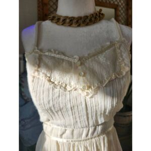 70s Cream Cottagecore Sundress with Petticoat Lace Ribbon 1970s Vintage Bridal