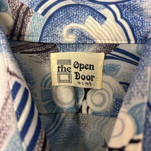 Incredibly groovy early 70s psychedelic op art dagger collar button up shirt in mint condition! No original tags attached but was acquired from liquidation deadstock pieces. Rare to find these amazing time capsule pieces in such condition. Made of medium weight polyester.