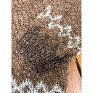 70s Icelandic Wool Lopapeysa Hand Made Lopi Cardigan Nordic Fair Isle Brown Ivor