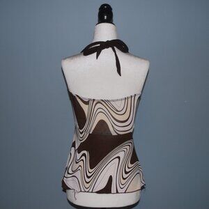 Channel the retro charm of the 70s with this brown halter top featuring a statement buckle and a flattering, fitted design