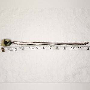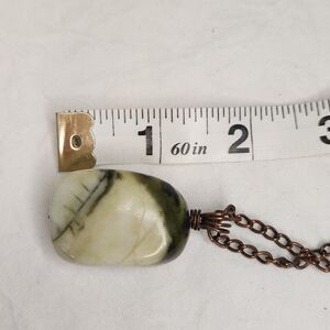 Marbled Jade Green & Cream 'Infinite Serpentine' stone pendant necklace on long brass chain.