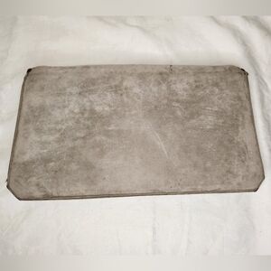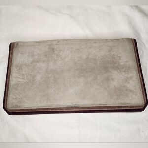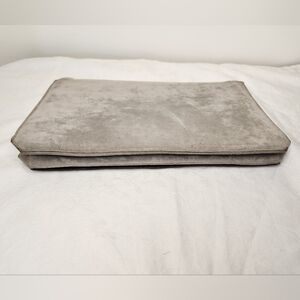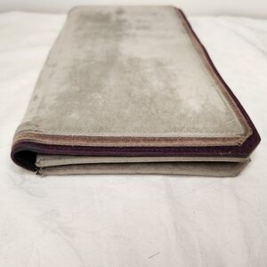 Soft velvety Silver Grey Suede Genuine Leather flap front clutch handbag with Plum Purple & Tan Brown layered edges, by CABRELLI.