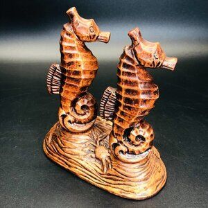 Vintage Treasure Craft Miami Sea Horse Salt Pepper Shakers Stand Set, 70s Beach House Decor, Retro Oceanside Beach Party, Ceramic Shaker Set
