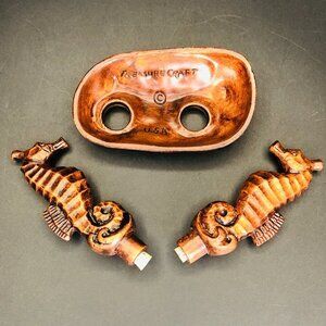 70s Treasure Craft Miami Seahorse Salt Pepper Shaker Stand Set Beach Party