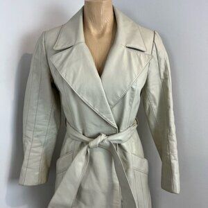 70s Vintage Embassy Women’s XS Genuine Leather Belted Tan Overcoat Jacket Trench