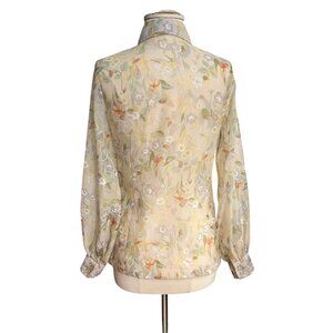 70s Vintage Lady Manhattan Blouse Semi Sheer Pastel Floral Pointed Collar.