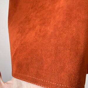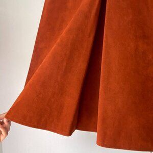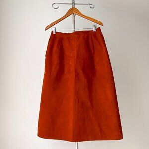 🍂 70s Vintage Rusty Orange Structured A-Line Faux-Suede Midi Pleated Skirt