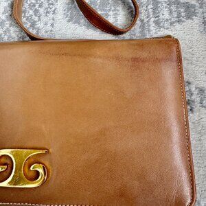 70s Vintage Saddle Leather w Gold Hardware Shoulder Bag