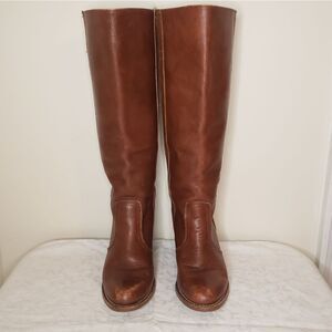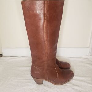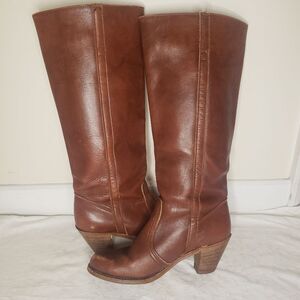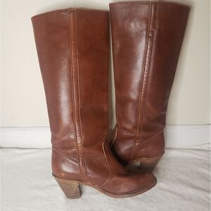 Vintage 1970s, supple worn in leather, hand stitched soles, original leather insoles, Excellent Vintage Condition, Made in USA, TTS size 7, Hight-17" Heel-2.5"