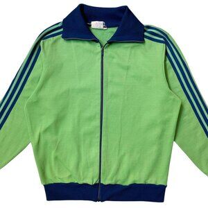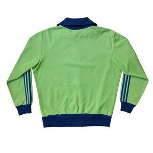 70s Vintage Adidas Track Jacket Sweatshirt Green with Blue Stripe.