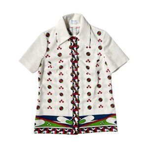 70s vintage abstract pattern blouse short sleeve pointed collar geometric print.
