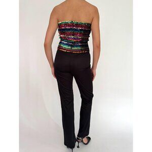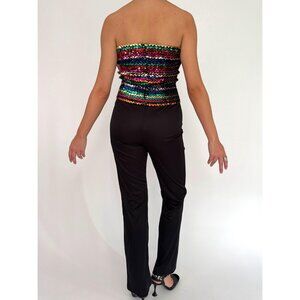70s vintage black rainbow sequin disco festival strapless tube top pant jumpsuit