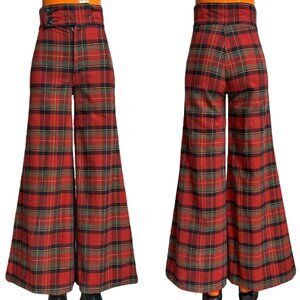 70s vintage highwaisted ultra flare jeans plaid denim high rise wide bellbottom.