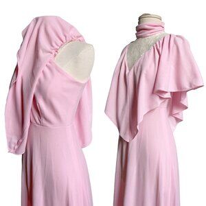 70s Vintage Victorian Cottage Cape Sleeve Maxi Dress