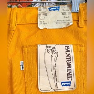 Awesome bright mustard yellow 80s "Pantomime" Levis Jeans. In deadstock condition, NWT! Never been worn. Only has a tiny, tiny snag as pictured. Rare to find vintage deadstock jeans nowadays, even more rare to find them in unique colors!