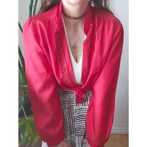 70s Red Collared Button Up Shirt Blouse Polyester Vintage 14