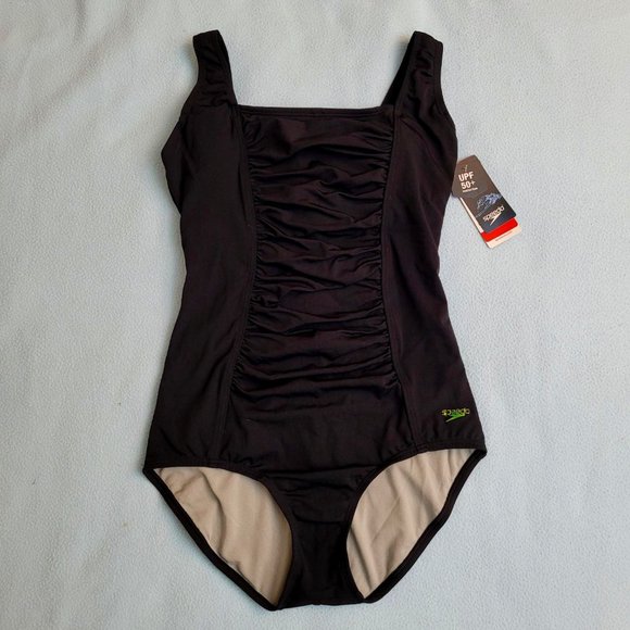 Speedo 1pc swimsuit. UPF 50+. Hydro bra and shaping support. Made of 20% bio-based renewable content. Black Size 10. NWT